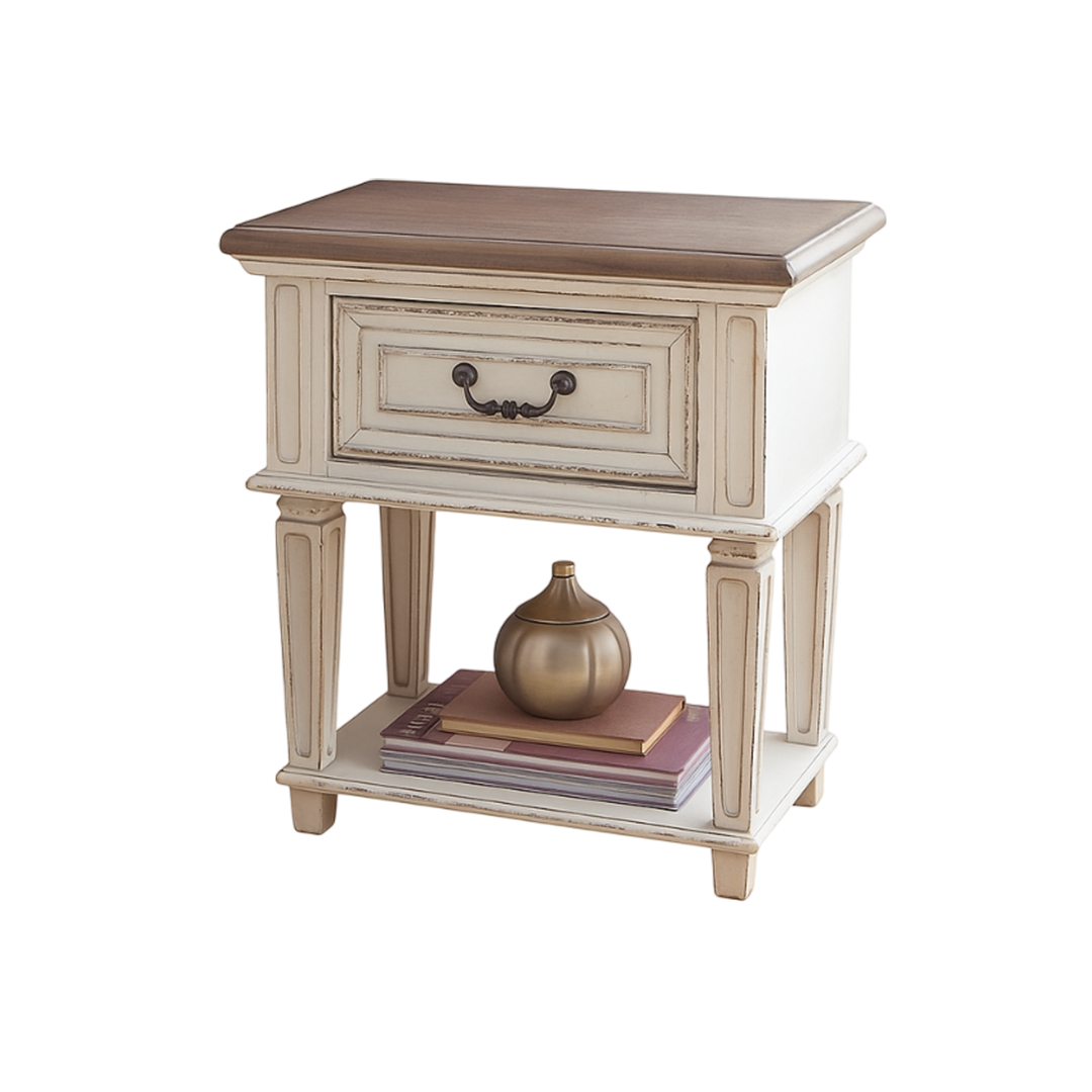 Geleneksel kır evi stili sanatını bir üst seviyeye taşıyan bu komidin, hayalinizdeki yatak odasının gerçekleşmesini sağlıyor. Eskitilmiş iki tonlu estetik, daha fazla çekicilik için yontulmuş beyazı eskitilmiş ahşap kaplamalı üst kısımla harmanlıyor. Klasik kefalet çekme donanımıyla süslenmiş, pürüzsüz kayan çekmece, yılların memnuniyeti için kaliteli kırlangıç kuyruğu yapısıyla üretilmiştir.